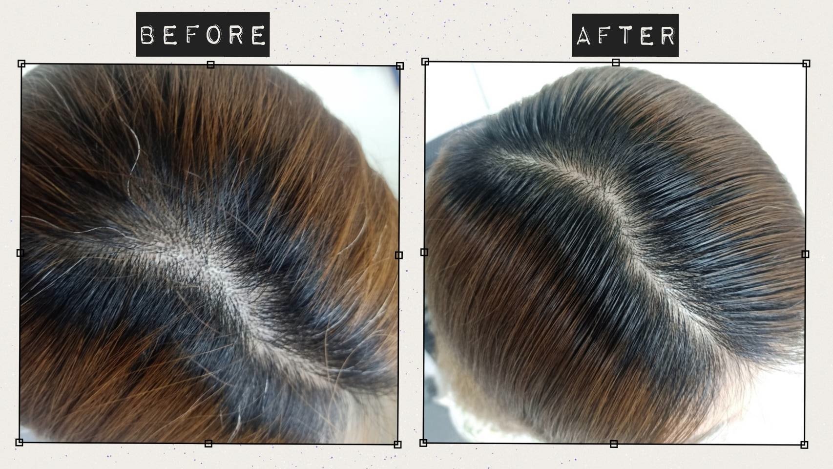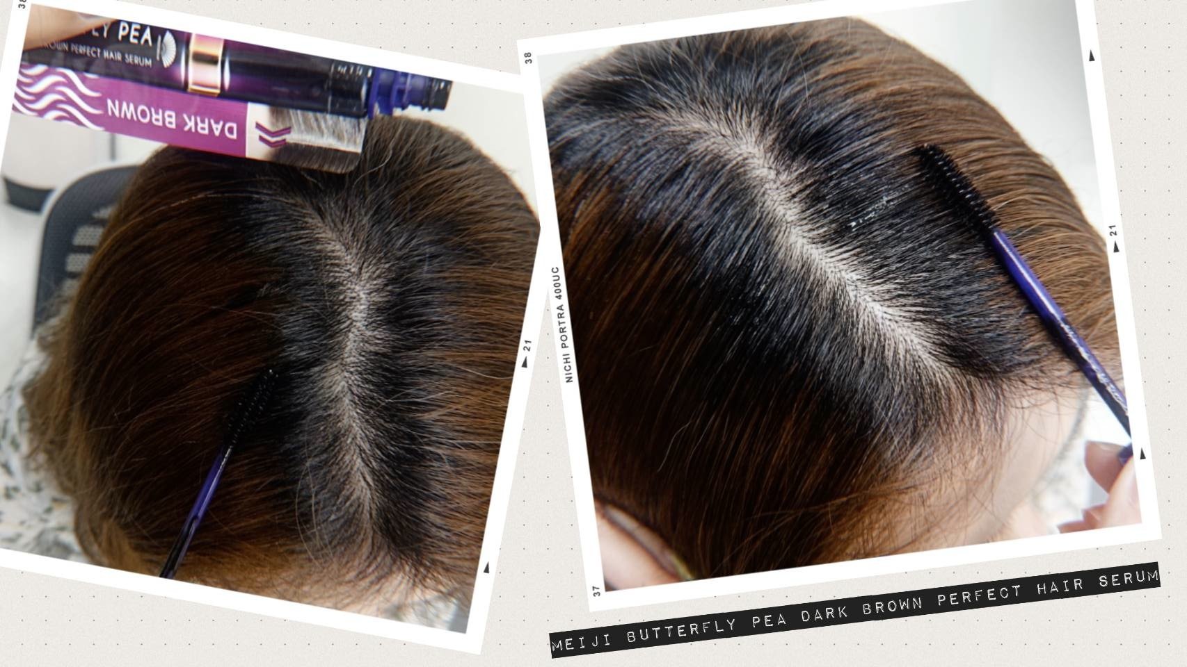 ปกติเราจะไม่ใช้ผลิตภัณฑ์บำรุงผมใดๆ บนเส้นผมเลยนะคะ พอป้ายเซรั่มอันนี้ ทิ้งไว้แป๊บเดียว จับๆ ดูก็รู้สึกว่ามันแห้งทันทีนะ แต่ถ้าใครใช้ผลิตภัณฑ์บำรุงผมก่อน อาจจะต้องทิ้งไว้นานหน่อย ลองดูนะคะ ในเรื่องสี เรารู้สึกว่ามันปกปิดได้ดีเลยทีเดียว เหมาะสำหรับเวลาจะออกงานแล้วไม่อยากให้ผมหงอกโผล่มาให้รำคาญตาจริงๆ ค่ะ