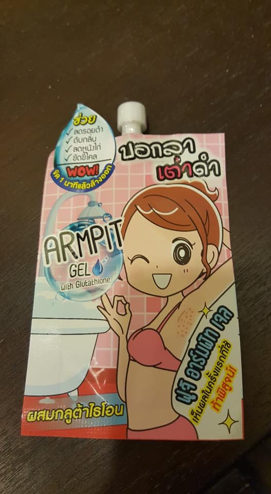 ซองชมพูคือตัวเจลขัดรักแร้ ตัวนี้ใช้ขัดผิวใต้วงแขนก่อนอาบน้ำชอบมากๆสัมผัสเป็นเนื้อเจลสีชมพูผสมเม็ดบีท จะเห็นได้ชัดเลยว่าขี้ไคลหลุดออกมาจริงใช้เสร็จแล้วล้างออกจะเห็นได้เลยว่าผิวใต้วงแขนขาวตุ่มหนังไก่ตื้นผิวเนียนขึ้น