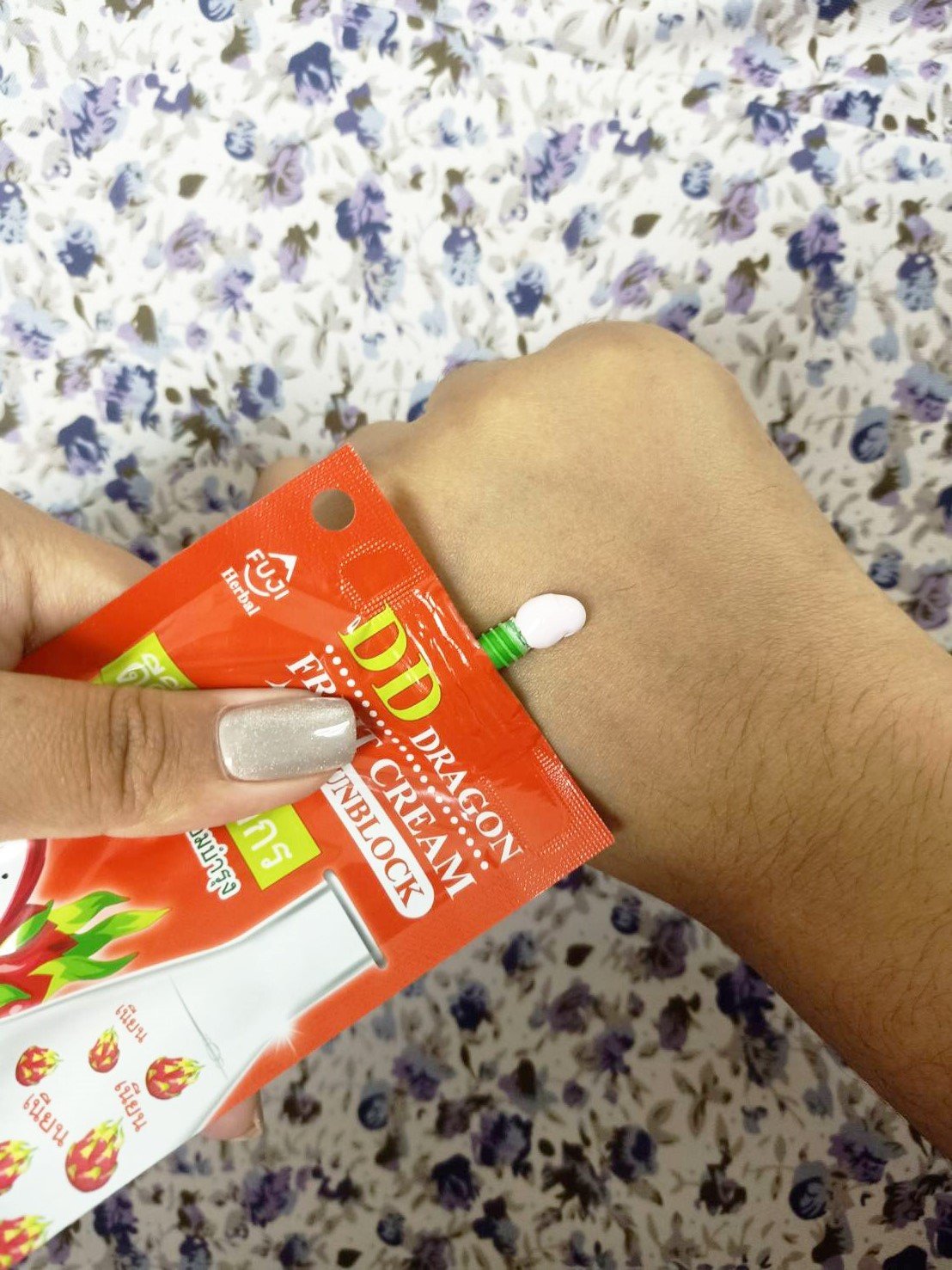 ส่วนตัวเราชอบตัว DD ครีมนะกลิ่นหอม ปรับผิวให้ขาวขึ้น เนื้อครีมจะออกสีชมพูอ่อนๆนะคะ ใช้แล้วหน้าเด่งดี แถมบำรุงในตัว ไม่เป็นคราบระหว่างวันด้วยค่ะ เขาบอกว่าช่วยเรื่องคุมมันด้วยค่ะ ราคาซองละ 49 บาทค่ะ