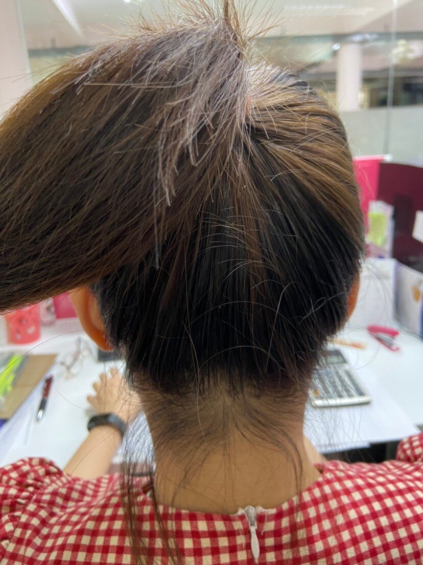 นี่ค่ะผมเราประมาณนี้ เลยมีปัญหาในการรวบผมอย่างมาก ลูกผมจะร่วงแบบนี้ตลอดเลย เซงสุดๆเลยยยย = ='